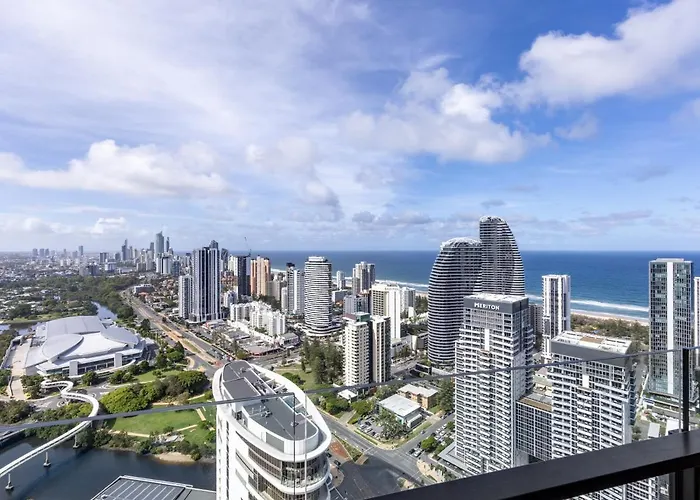Cityscape Ocean View Deluxe 2Bedroom Apartment Gold Coast, di 80 m², offre un'entrata veloce ad attrazioni turistiche come The Oasis Shopping Centre, che si trova a soli 6 minuti a piedi. Situato abbastanza vicino al Casinò Star Gold Coast, l'appartamento offre l'accesso a una piscina interna e a un centro fitness.